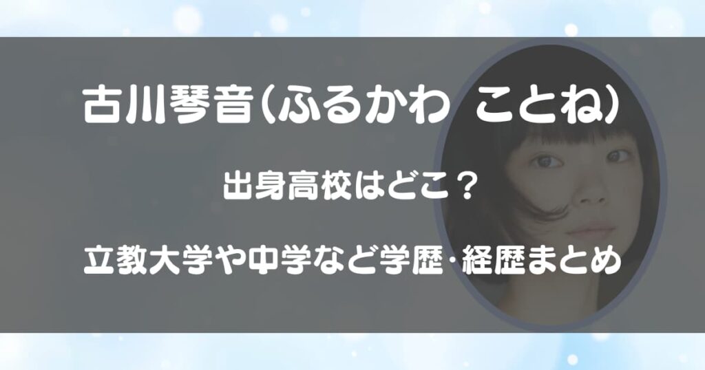 古川琴音(ふるかわ ことね)さんは、自然体の演技で注目を集める実力派女優です。 そんな古川琴音さんの出身高校はどこなのか、立教大学の学部や中学時代の学歴が気になる方も多いのではないでしょうか。 本記事では、古川琴音さんの出身高校を中心に、立... 学歴・経歴