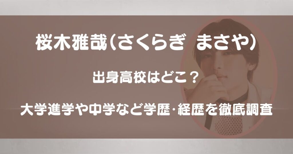 桜木雅哉の出身高校はどこ?大学進学や中学など学歴・経歴を徹底調査