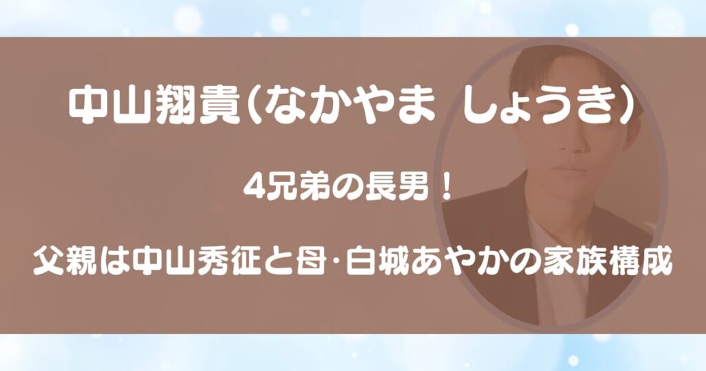 中山翔貴は4兄弟の長男!父親は中山秀征と母・白城あやかの家族構成