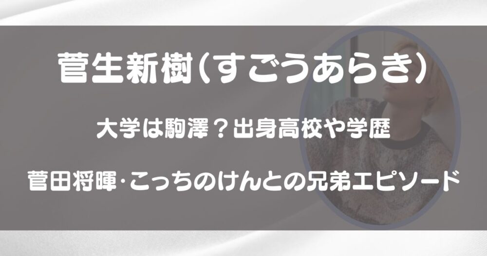 菅生新樹(すごうあらき)さんは、話題のドラマやCMで注目を集める若手俳優ですが、実はあの菅田将暉さんの実弟としても有名ですよね。 「出身大学は駒澤大学って本当?」「高校は大阪の強豪校?」と、その高学歴な噂や学生時代が気になっている方も多いの... -