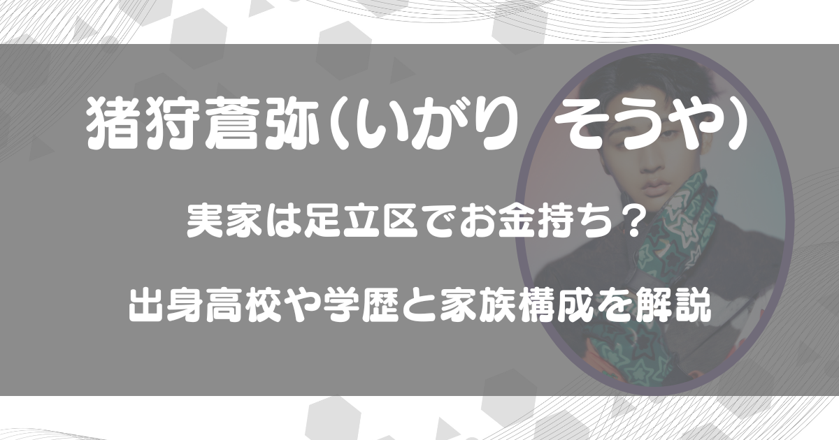 猪狩蒼弥さんには「実家は足立区」「実はお金持ち」という噂が根強くあります。 これは彼の大人びた言動や時折見せる豪快な金銭感覚から、育った環境に注目が集まっているためです。