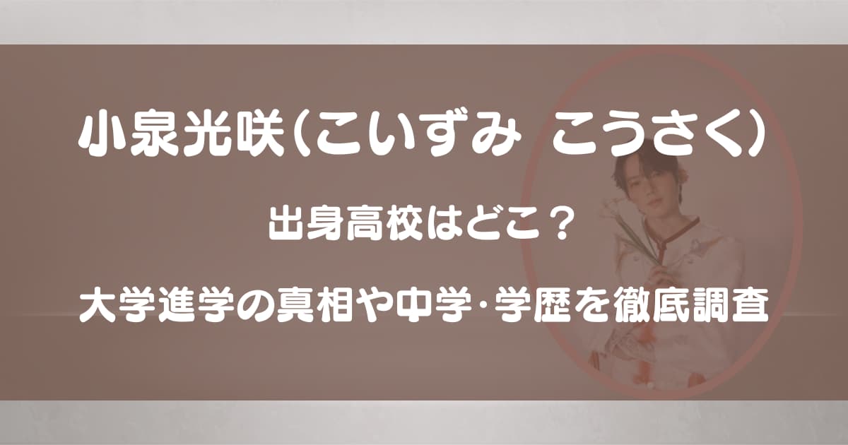 小泉光咲(こいずみ こうさく)さんの出身高校はどこなのか、気になっている方も多いのではないでしょうか。