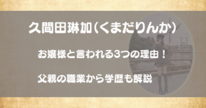そんな久間田琳加さんが、実は「お嬢様」や「お金持ち」と言われている理由や、エリートと噂される父親の職業、そして大学や高校などの学歴が気になるところですよね!