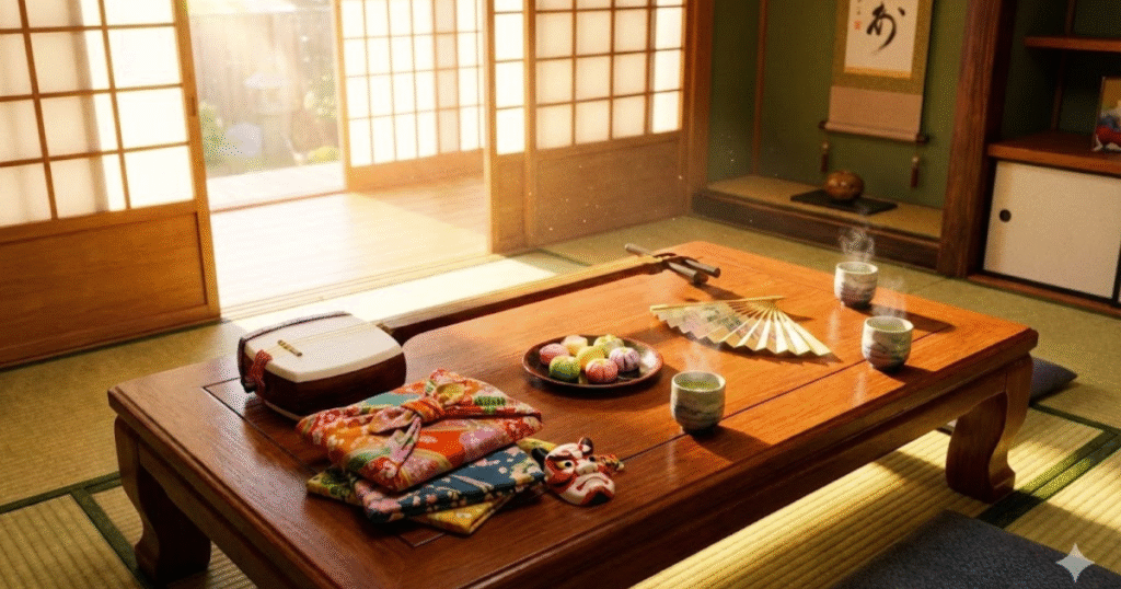尾上右近の家族の絆を象徴する三味線と扇子のイメージ
