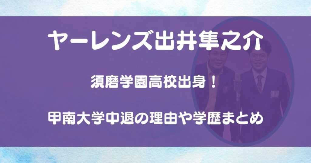 M-1グランプリで話題のヤーレンズ出井隼之介さんですが、実は兵庫県の難関・須磨学園高校の出身でありながら、甲南大学を中退して芸人になった異色の経歴を持っています。 本記事では、出井隼之介さんの学歴と男子1期生だった高校時代のエピソードや、大学... -