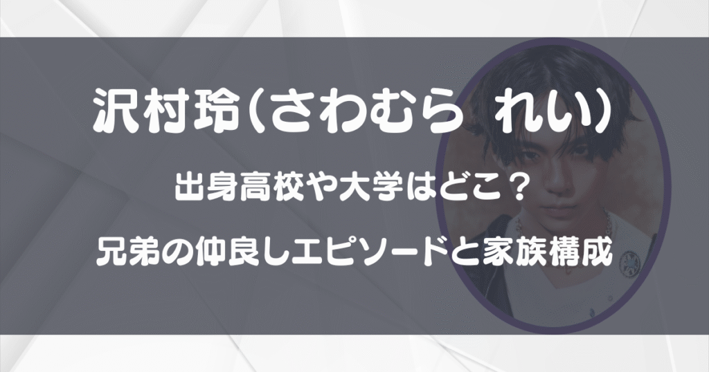 沢村玲の出身高校や大学はどこ?兄弟の仲良しエピソードと家族構成